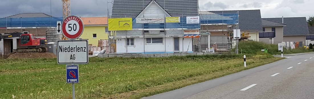Jahrhundertelang standen die Niederlenzer im Schatten derer, die Geschichte machten. Einzige urkundlich festgehaltene Zeugnisse ihres Daseins sind, dass sie tüchtig Zinsen zahlten. Nutzniesser waren häufig wechselnde kirchliche und weltliche Herren. Erst in allerneuster Zeit begann das Dorf am Aabach bemerkenswerte Zeugen einer selbstbewussten Eigenständigkeit zu schaffen: Der Gemeindesaal im 1973 eingeweihten Oberstufenschulhaus verlieh dem kulturellen und gesellschaftlichen Leben des Dorfes entscheidende Impulse. Besonders stolz sind die Niederlenzer auf ihr 1978 entstandenes Dorfzentrum in der alten Mühle. Ein Konsortium von vier Partnern – Gemeinde, Post, Verein für Altersbetreuung Niederlenz und die Baumaterialienfirma Beton AG – schuf hier ein Musterbeispiel zur Erhaltung alter Bausubstanz in einem Dorfkern. Ebenfalls im Zeichen der Erhaltung steht das Niederlenzer “Jahrhundertwerk”, das im September 1989 mit einem Spatenstich in Angriff genommen wurde: Die Sanierung von Aabach und Hauptstrasse. Zwischen den Häusern im Aabachtal zwängen sich Strasse und Aabach auf engstem Raum durch. Das in den 30er Jahren angelegte Bett des Aabaches vermochte die Hochwasser nicht mehr zu schlucken. Schon gegen Ende der 50er Jahre wurde deshalb mit der Planung für eine Sanierung begonnen. Im Laufe der folgenden Jahrzehnte lehnten die Niederlenzer beharrlich jedes Projekt ab, das eine gänzliche oder auch nur teilweise Überdeckung des Baches vorsah. Das Ei des Kolumbus konnte Mitte der 80er Jahre dank neuer Bautechnologie gefunden werden. Für den Aabach wird im Pressvortrieb ein 2’762m langer Stollen von 2,75m Durchmesser entlang der 1984 stillgelegten Seetalbahn gebohrt. Dadurch kann der Aabach in der bisherigen Grösse weiterhin offen durch das Dorf rauschen.