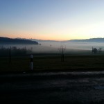 Zum vollständigen Text =>: Schnitzeljagd am DonnerstagEine Runde in das aufsteigende Abendrot. Etwas mystische Stimmung verbreiten die Bodennebel. Das GPS registrierte 42.3 KM und 313 Höhenmeter.