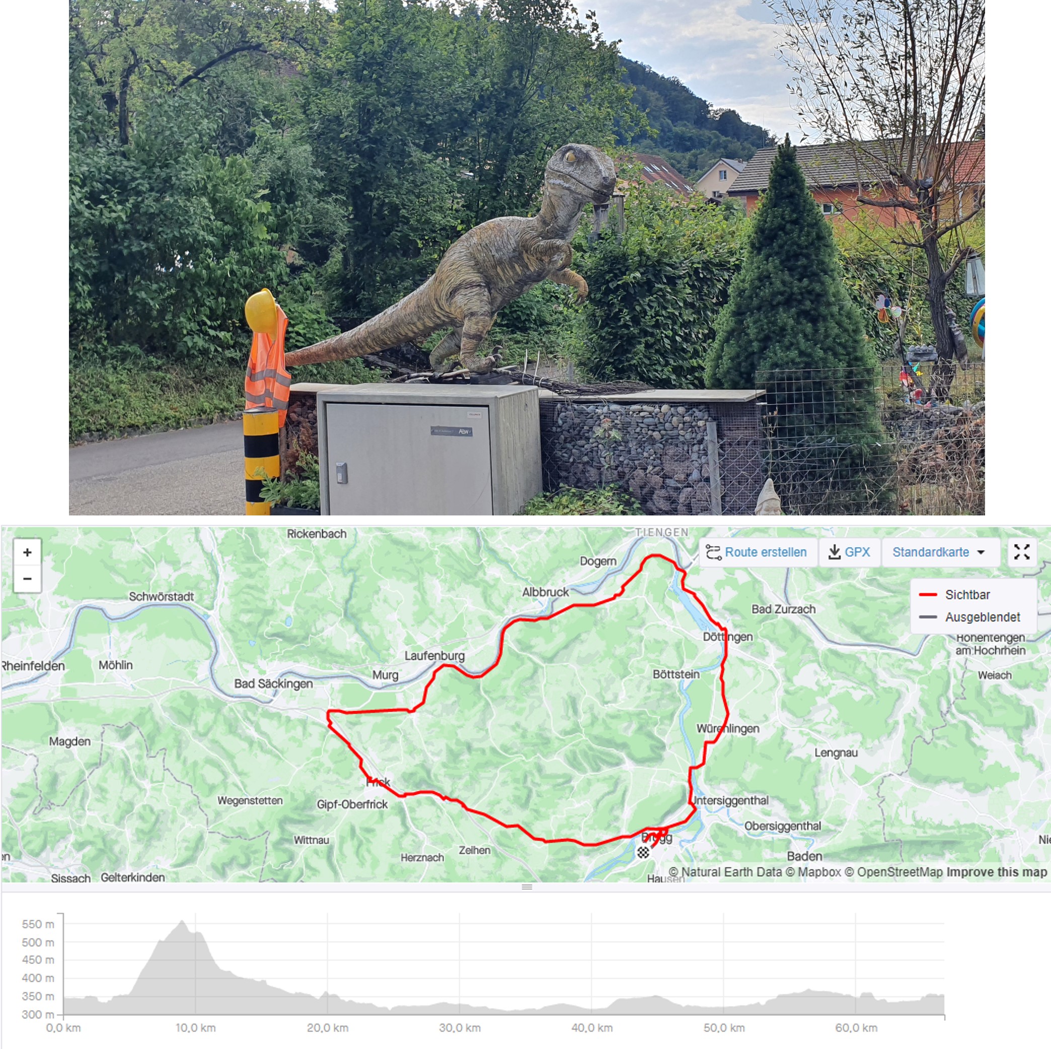 Zum vollständigen Text =>: Bözberg-Rheintal-BürensteigAus einer Kurrierfahrt wurde eine hügelige Fahrt durch den Jurapark. Das GPS registrierte 58.2 KM und 716 Höhenmeter.