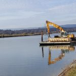 Die gestaute Aare, bevor sie in den Rhein mündet.