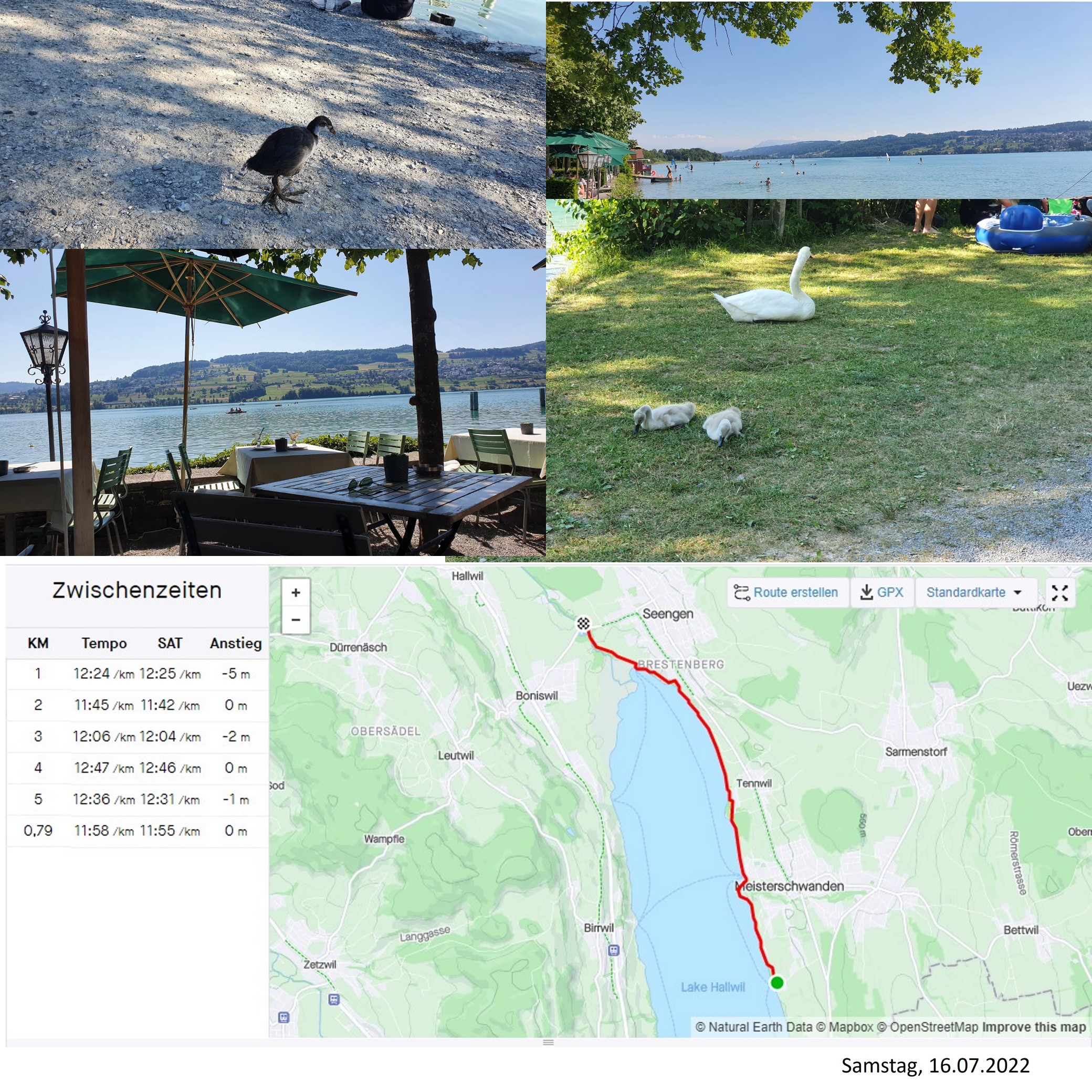 Zum vollständigen Text =>: Lauf am Hallwilersee (Hin und zurück)Eine Wanderung entlang dem Hallwilersee, entlang dem nicht ganz so heissen See und durch die kühlenden Wälder. Das GPS registrierte 11.6 KM und 22 Höhenmeter.